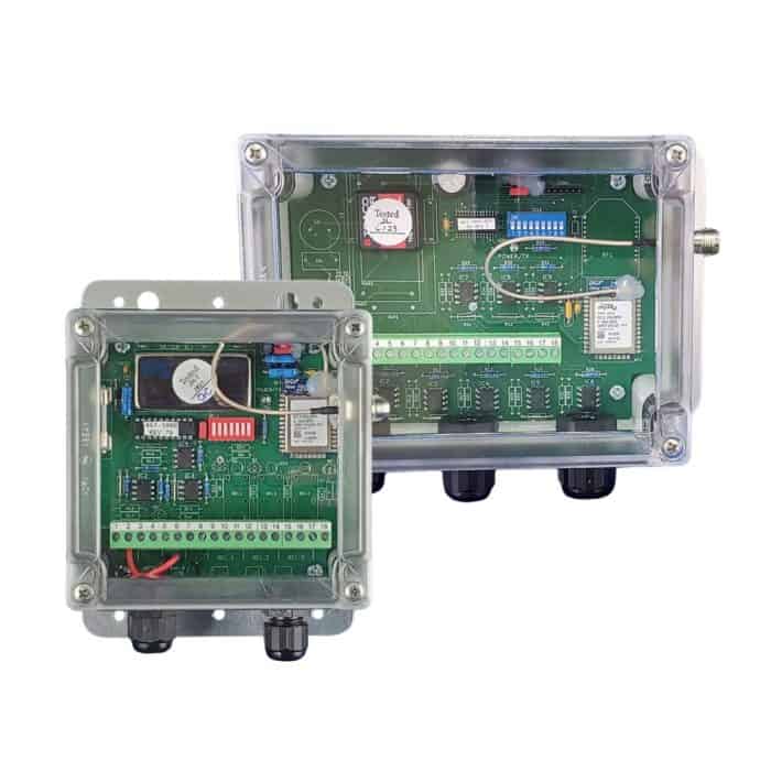 BWI Eagle Voltage Input Transmitters provide automatic control of remote equipment using voltage inputs from any external source. Depending on the model, these multi-channel industrial remote control units can operate one or more receivers at distances up to 5,000 feet or an extended range up to 10 miles. Each unit includes a terminal strip that accepts one or more 5-24VDC or 120VAC voltage inputs from external relays or switches.